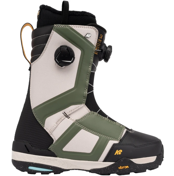 The K2 Orton Boots are the quintessential Freeride/Freestyle boots that have everything the most demanding riders on the mountain need. The shell lacing features the H4/M3 Zonal Boa Fit System with TX3 Boa Rope Laces. The upper shell lacing powered by an H4 Coiler Boa dial and the lower shell lacing controlled by an M3 Boa dial, allowing the rider to independently control the upper and lower zones of the boot for the perfect fit. Bulletproof HDR Premium Synthetic materials help to resist abrasion and make for a longer-lasting snowboard boot. Inside, Intuition Pro Foam 3D Liner can be heat molded to the exact shape and size of your foot and ankle with added heat-reflective material to the boot to help keep feet warm and dry. Underfoot, a midsole made up of a traditional EVA and K2’s proprietary Harshmellow material to absorb impact, increase damping on top of K2’s all-new ultra-rugged Vibram® V5 Outsole provides industry leading traction and durability in all conditions and terrain. If you’re a snowboarder that is tough on your gear and pushes the limits everyday on the mountain then this is the boot that’s made for you.