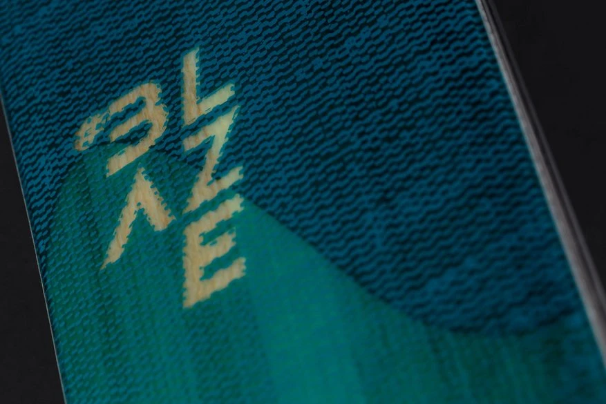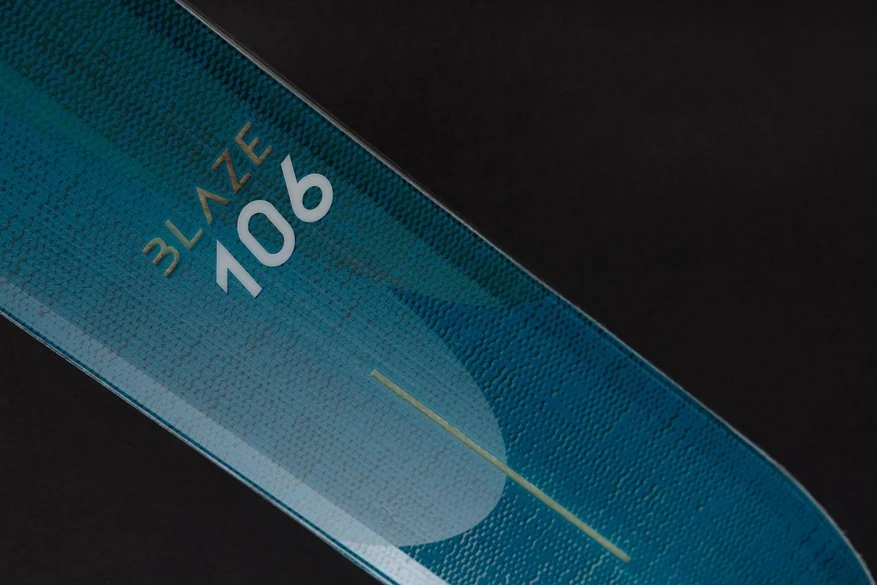 A 0.3 mm thick Titanal binding platform provides direct power transfer and a fast pressure build-up from one edge to another. You will particularly benefit from the ski’s faster and more direct reaction in narrow and rough terrain – and with less effort. The Blaze has been primarily designed for short, fast turns but the three different radii together with the tip to tail hybrid multilayer wood core adapt to any riding style how ever ambitious.